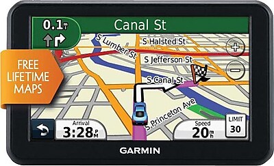 The nuvi 50's intuitive interface greets you with 2 simple choices: "Where To?" and "View Map." Touch the screen to easily look up addresses and services and to be guided to your destination with voice-prompted, turn-by-turn directions that speak street names. It comes preloaded with maps for the lower 48 states plus Hawaii and Puerto Rico. nuvi 50’s speed limit indicator shows you how fast you can go on most major roads. With its "Where Am I?" emergency locator, you always know your location. It also comes preloaded with millions of POIs and offers the ability to add your own. Now there’s no more guessing which lane you need to be in to make an upcoming turn. Available in select metropolitan areas, lane assist with junction view guides you to the correct lane for an approaching turn or exit, making unfamiliar intersections and exits easy to navigate. It realistically displays road signs and junctions on your route along with arrows that indicate the proper lane for navigation.